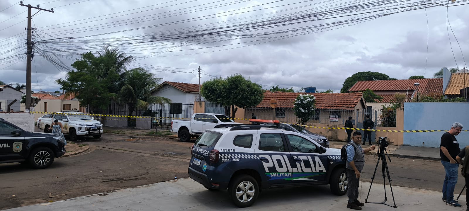 Movimentação policial em frente a casa onde aconteceu o crime (Foto: Enviada ao Enfoque MS)