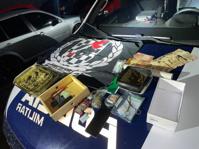 O 9º Batalhão de Polícia Militar, por meio da equipe de Força Tática, prendeu um traficante de drogas nesta madrugada (08). Durante a realização do patrulhamento, os policiais militares visualizaram um indivíduo em uma motocicleta com a placa torcida, impossibilitando sua identificação, dando ensejo a abordagem. Realizada a busca pessoal foram localizadas porções de maconha, cocaína e LSD, além de uma quantia em dinheiro.