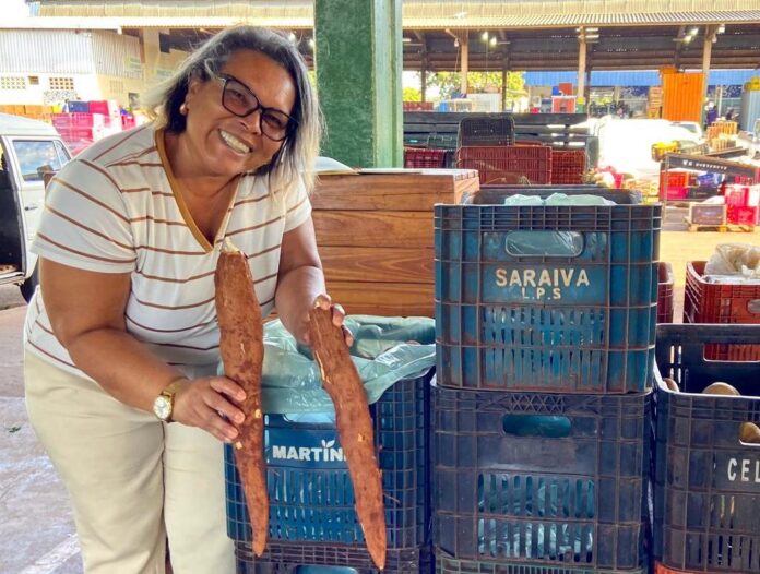 Diariamente, ela comercializa cerca de 80 caixas de mandioca, produto que sai direto do campo para o mercado, fortalecendo a presença da agricultura familiar no abastecimento da Capital.