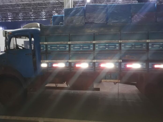 O caminhão com a carga foi apreendido e levado para o pátio da Receita Federal.