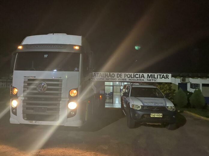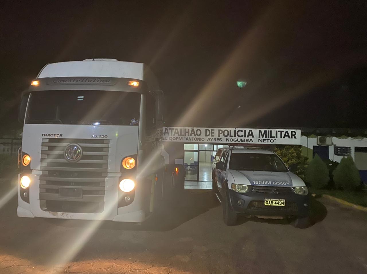 Diante dos fatos, após serem comunicados acerca da restrição criminal do veículo, o mesmo foi entregue aos Policiais Militares, que conduziram o caminhão para o Primeiro Distrito Policial.