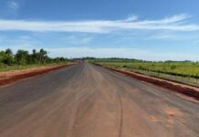 A obra de asfalto segue em várias frentes de trabalho. Já foram concluídos 4,5 km de pavimentação. Já o trabalho de base e sub-base já chegaram a 8 km e devem receber a capa de asfalto até o final do mês. Também continuam os serviços de terraplanagem e instalação de canaletas no local.