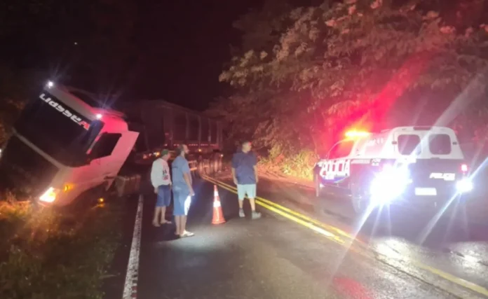 A chuva que caía sobre a Serra do Sucuriú terminou com uma carreta atravessada na BR-060 e a rodovia interditada por horas na noite desta segunda-feira (23). O acidente aconteceu em Paraíso das Águas, a 277 quilômetros de Campo Grande. Apesar do susto, ninguém ficou ferido.