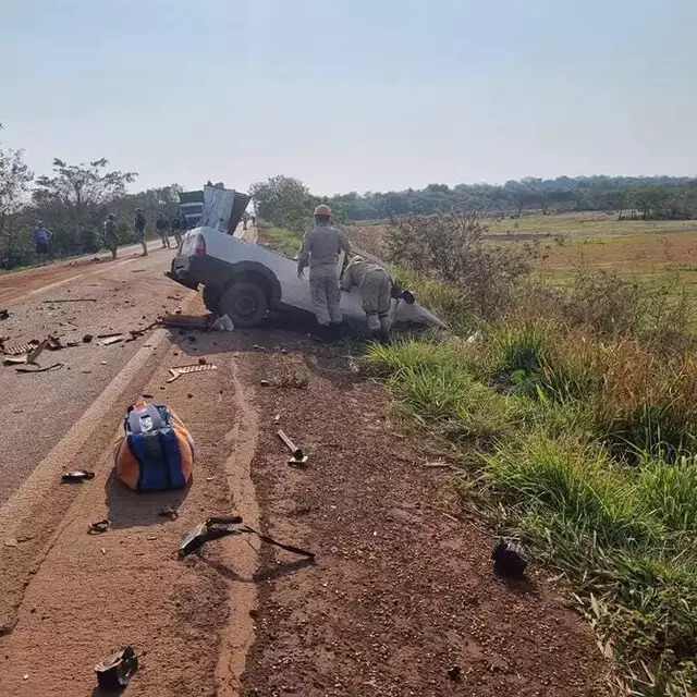 Acidente entre pick-up e carreta mata uma pessoa e deixa outra gravemente ferida em Rio Brilhante