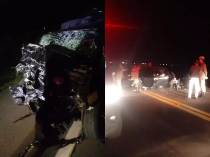 Acidente envolvendo três carros deixa duas vítimas presas às ferragens na BR-163