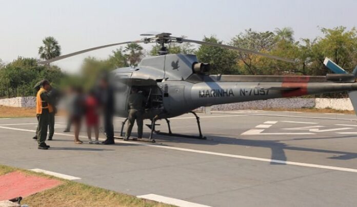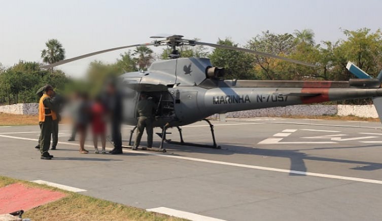 Entretanto, devido à gravidade do quadro clínico e a dificuldade de acesso da região, foi solicitado apoio à Marinha, que deslocou uma aeronave do 1º Esquadrão de Helicópteros de Emprego Geral do Oeste, subordinada ao Comando do 6º Distrito Naval.