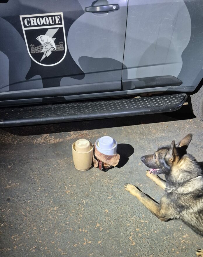 Desconfiados de que pudesse estar transportando algo de ilício, foi realizada uma varredura com o cão de faro Hulk, que indicou positivamente para a presença de droga.
