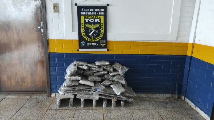Durante vistoria no bagageiro foi encontrado uma mala suspeita que, ao ser aberta, revelou estar carregada com 10,5 quilos de maconha. Um adolescente foi identificado como sendo o responsável pela bagagem.