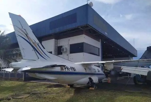 Além disso, o Certificado de Aeronavegabilidade (CA) está cancelado devido às pendências judiciais e por estar vencida. Apesar dessas situações, o avião foi avaliado pela leiloeira em R$ 1.565.100,00.