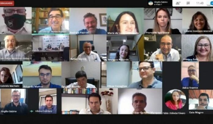 Com participação da Agência Estadual de Administração do Sistema Penitenciário (Agepen), por meio do diretor-presidente Aud de Oliveira Chaves e a chefe da Divisão de Saúde Prisional, Maria de Lourdes Delgado Alves, o grupo se reúne, por videoconferência, para discutir medidas de prevenção e combate à disseminação do coronavírus no ambiente carcerário.