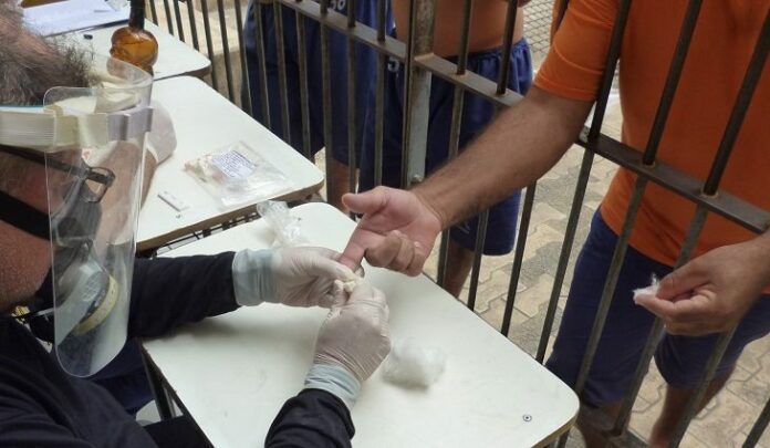 Um mutirão de testagens para detecção da Covid-19 está sendo realizado na Unidade Penal Ricardo Brandão (UPRB), em Ponta Porã (foto principal). Mais 400 testes rápidos foram destinados ao presídio pela Secretaria de Estado de Saúde (SES), por meio da Agência Estadual de Administração do Sistema Penitenciário (Agepen), em complementação às testagens que já vinham sendo oferecidas através do método RT-PCR pela secretaria municipal com insumos disponibilizados pela SES.