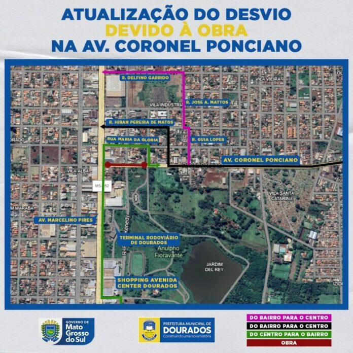 A rua Coronel Ponciano passa por obras de duplicação em boa parte da sua extensão e, nesta terça-feira (9), o trecho entre a avenida Marcelino Pires e a rua Waldomiro de Souza será interditado por 15 dias. A Agetran (Agência Municipal de Transporte e Trânsito) organiza o fluxo de veículos na região, com rotas alternativas nos dois sentidos.
