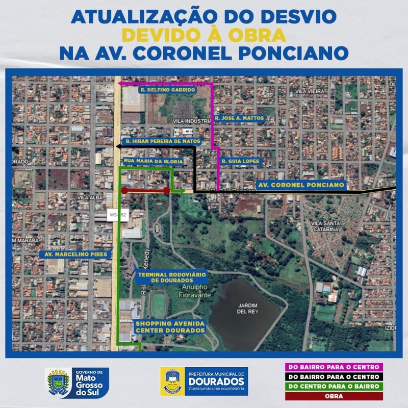 Segundo o planejamento da Agetran, os veículos que circulam no sentido centro-bairro, podem sair da Marcelino Pires pela rua Maria da Glória até a rua Waldomiro de Souza, por onde retomam o caminho pela rua Coronel Ponciano.