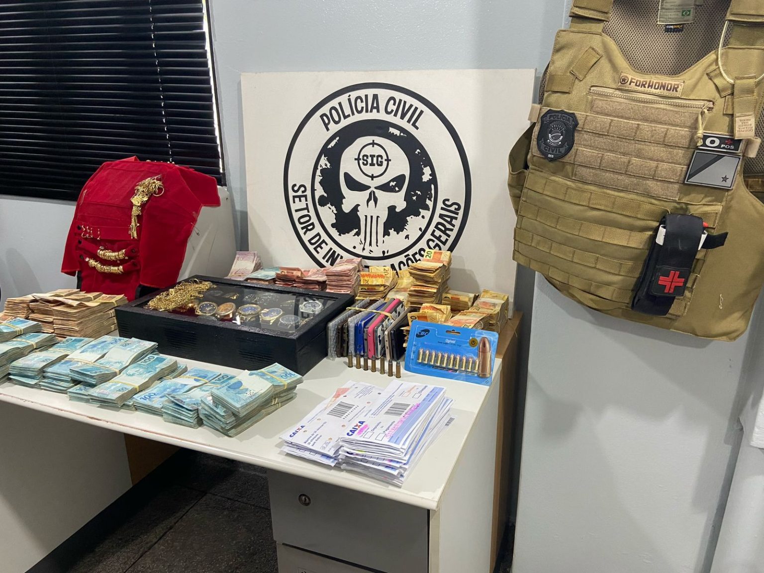 Uma operação desencadeada pela Polícia Civil nesta segunda-feira (31) resultou na apreensão de três veículos, munições, joias e mais de R$ 437,9 mil em espécie. A investida apura um esquema de agiotagem na região de Corumbá e Ladário.