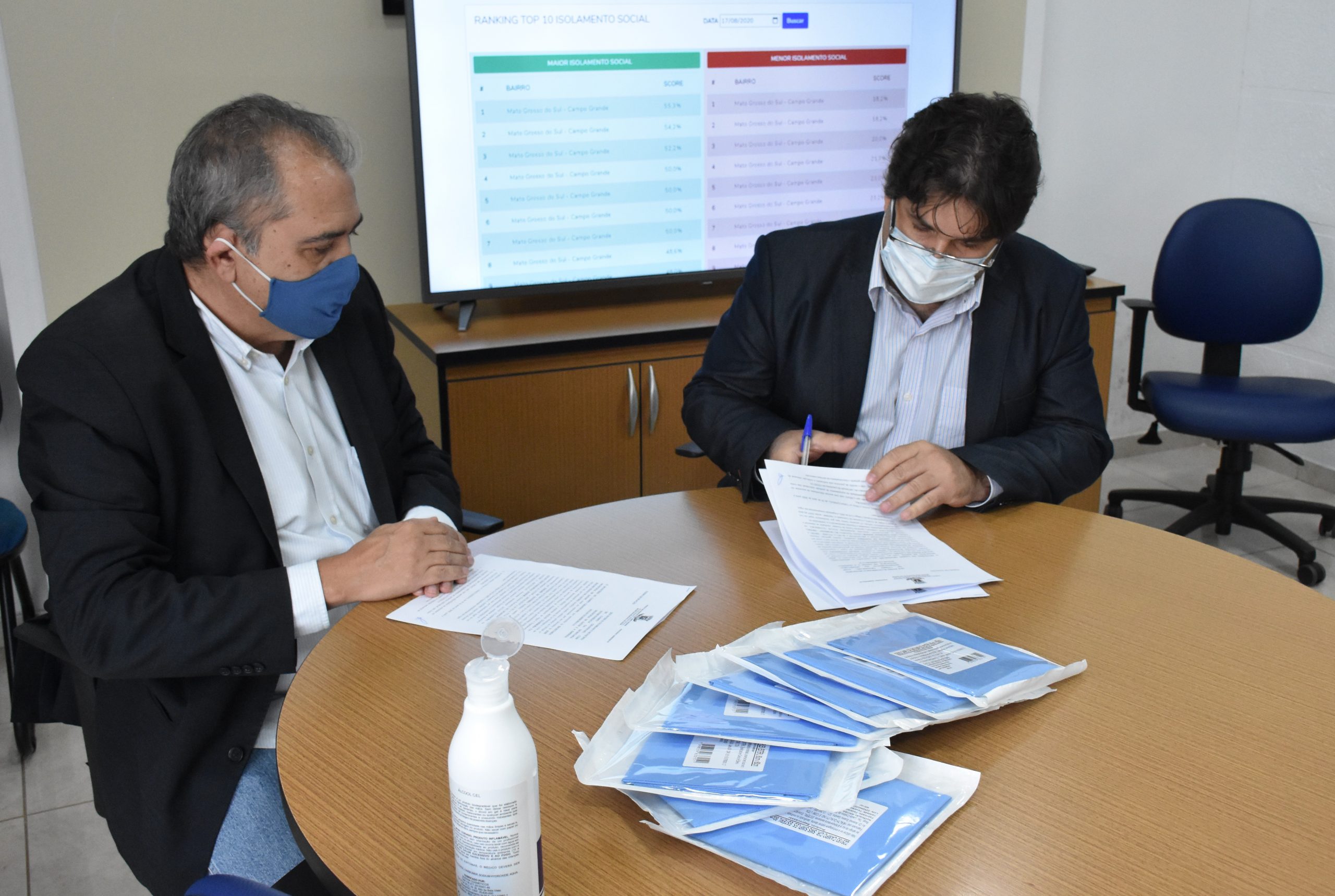 A Águas Guariroba entregou nesta quarta-feira (19) para a Secretaria Municipal de Saúde (SESAU) materiais médico hospitalar para apoiar nas ações de prevenção ao novo coronavirus em Campo Grande. A entrega foi realizada na sede da SESAU e contou com a presença do diretor-presidente da Águas Guariroba, Themis de Oliveira, do secretário municipal de saúde de Campo Grande, Jose Mauro de Castro Filho e do gerente regional de responsabilidade social, Willian Carvalho.