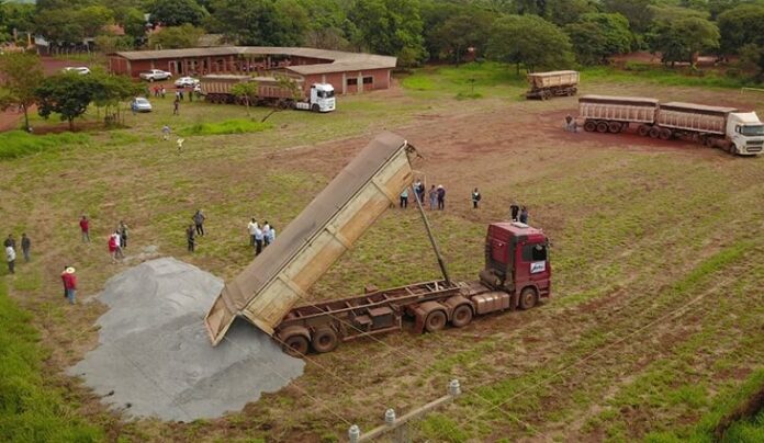 A primeira remessa foi entregue na aldeia Bororó, em Dourados. Foram 250 toneladas em três carretas bitrens. Ao todo serão mil toneladas de calcário para Bororó e mais 1.250 toneladas para aldeia Jaguapiru, também em Dourados. “Muita satisfação em participar desta primeira entrega aqui na aldeia Bororó”, comentou o diretor-presidente da Agraer (Agência de Desenvolvimento Agrário e Extensão Rural), André Nogueira Borges.