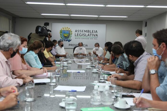 Representantes da Assembleia Legislativa de Mato Grosso do Sul (ALEMS) e do Poder Executivo se reuniram, nesta quarta-feira (1), para detalhar o encaminhamento dos pedidos de emendas parlamentares ao Governo do Estado. O primeiro secretário da Casa de Leis, deputado Zé Teixeira (DEM), e o presidente da Comissão de Saúde da ALEMS, deputado Antonio Vaz (Republicanos), receberam o secretário de Estado da Casa Civil, Sérgio de Paula.
