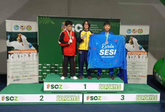 O aluno Thomas Ryu Kobayashi, da Escola Sesi de Três Lagoas, conquistou medalha de bronze no Campeonato Sul-Americano de Karatê, disputado em junho na cidade de Santa Cruz de La Sierra, na Bolívia. Competindo na modalidade shiai kumite, o jovem de 13 anos subiu ao pódio na categoria sub-14 para atletas até 42 kg.