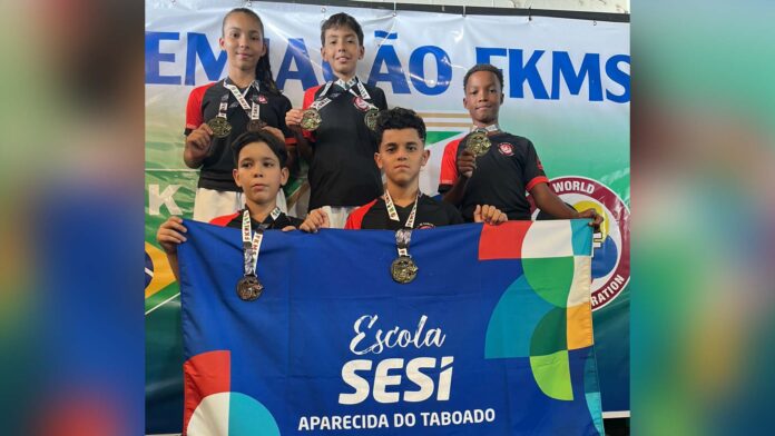 Os alunos-atletas Pedro Souza, Giovanna Fagundes, David Gabriel, Wesley Gianini e Hugo Viana, da Escola Sesi de Aparecida do Taboado, tiveram participação de destaque na 1ª etapa do Campeonato Estadual de Karatê em Sidrolândia, no último sábado (25/04).