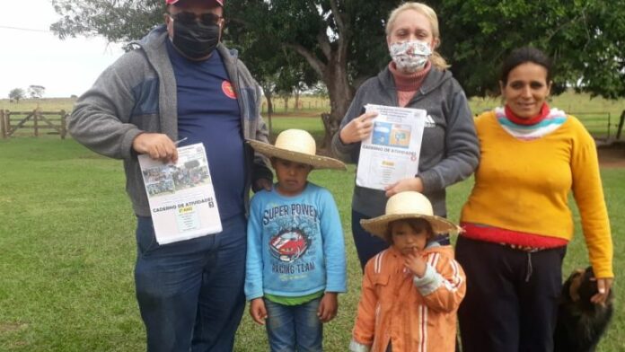 Os alunos da Escola Oito de Dezembro, em Anhanduí, que vivem em fazendas e assentamentos, são alguns que recebem o material em casa. A unidade fica a 120 quilômetros da área urbana e, por isso, a comunidade escolar uniu-se para que todos os estudantes tenham o caderno de atividades impresso, tendo em vista que a internet, na região, é limitada, com acesso de apenas 10% da população.Os professores da unidade fizeram, de forma voluntária, uma força-tarefa. No total, 18 profissionais uniram-se para distribuir os cadernos nas extensões – Professora Onira Santos Rosa, localizada a 60 quilômetros da sede da escola e na Fazenda Santa Maria, a 130 quilômetros. Os cadernos foram distribuídos em 107 fazendas e em 26 lotes de assentamentos, além de ficarem disponíveis na própria escola.