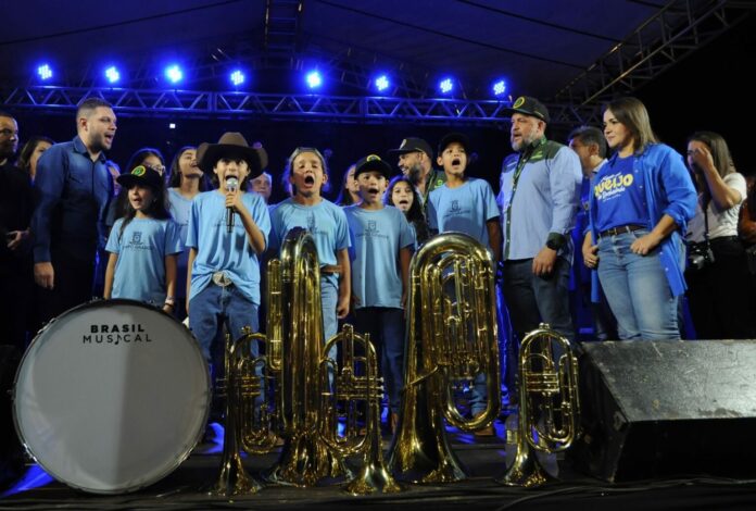 Alunos da Escola Agrícola Municipal Barão do Rio Branco, no distrito de Rochedinho, ganharam novos instrumentos para bandas de fanfarra. Ao todo, são 150 instrumentos, incluindo sopro, o que vai oportunizar a criação da banda de fanfarra na unidade. A entrega foi feita pela prefeita Adriane Lopes, na noite do último sábado (8), durante a festa do Queijo no Distrito de Campo Grande.