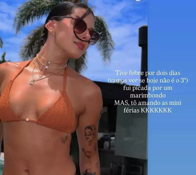 “Estou há dois dias com febre, marimbondo me picou e eu caí da banana. Machuquei a costela”, contou durante conversa com um amigo na piscina. “Não tô respirando direito, tá dando dor na costela”, completou. “Galera, eu tomei injeção até na bunda”, detalhou a sertaneja. Apesar disso, ela demonstrou estar melhor e recuperada.