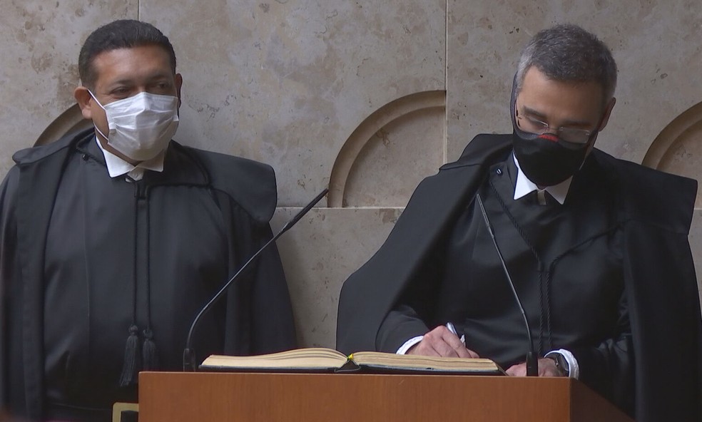 Em cerimônia no plenário do STF, com participação restrita de autoridades e convidados em razão da pandemia de Covid, Mendonça leu o compromisso de cumprir os deveres do cargo e a Constituição e foi declarado empossado pelo presidente do Supremo, Luiz Fux.