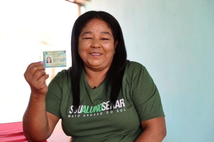 Identidade! Foi o que Lucimar Crispim conquistou através do Senar/MS. Ela cresceu analfabeta por conta das dificuldades impostas pela infância e adolescência no campo. Barreiras geográficas e comunicacionais a impediram de concretizar o desejo de frequentar a escola. Hoje, aos 55 anos, após participar do Programa Despertando, realizou o sonho de ser estudante e, literalmente, documentou a transformação emitindo pela primeira vez em sua vida a carteira de identidade com assinatura própria.