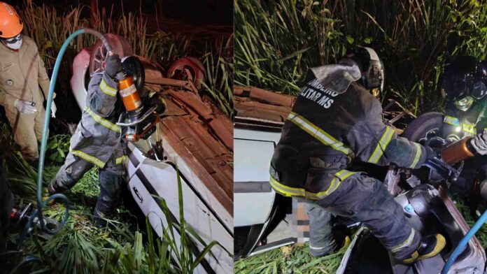 Um veículo capotou e parou com as rodas para cima no meio de uma área de vegetação às margens da rodovia federal BR-262, próximo da rotatória da Lajinha, a cerca de 10 quilômetros da área urbana de Corumbá. O sinistro aconteceu na noite de ontem (04).