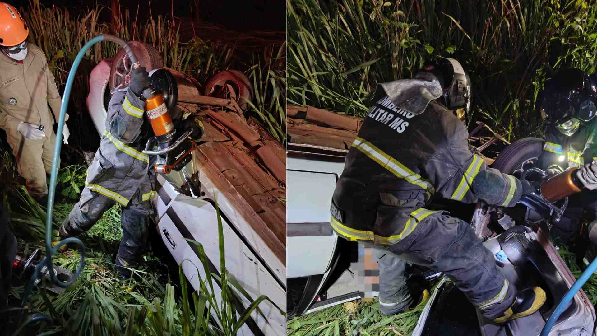 Outros motoristas que passavam pelo local avistaram o automóvel capotado e acionaram o resgate. O motorista estava preso nos destroços, sendo necessário cortar as ferragens para removê-lo com segurança.