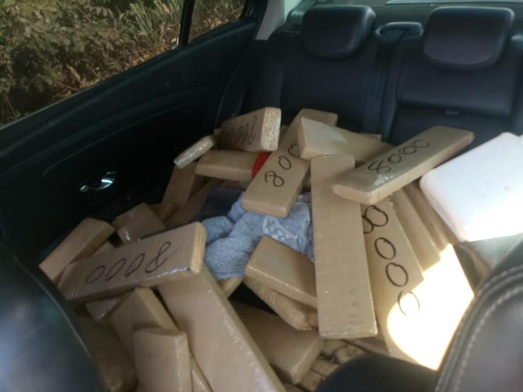 Junto ao Fluence foram localizados 487 tabletes do entorpecente em cima do banco traseiro e no porta-malas, além de outros dez que estavam caído próximo ao carro. Toda a carga somou 534,5 quilos.