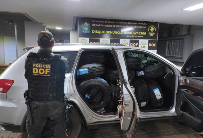 Uma carga com 120 pneus contrabandeados foi apreendida na madrugada de domingo (09) por policiais do Departamento de Operações de Fronteira (DOF).