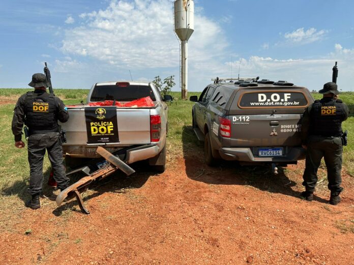 Entretanto, o motorista não obedeceu e abriu fuga em alta velocidade. Após percorrer mais de cinco quilômetros, o traficante parou em um pasto e fugiu a pé.