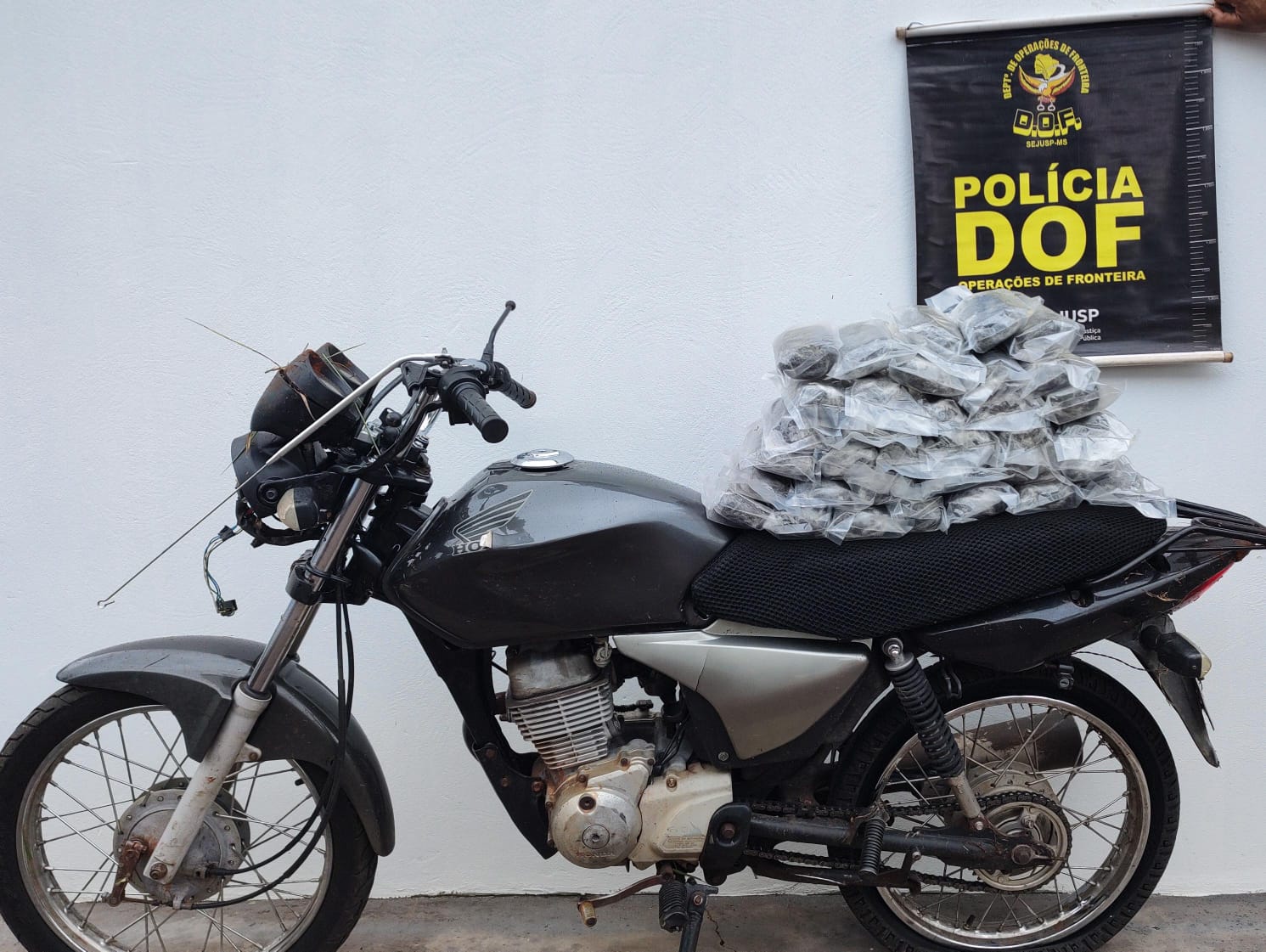 Na manobra, ele invadiu uma área de mato e caiu, sendo preso em flagrante. Com ele, dentro de um baú que era transportado na garupa, foram encontradas drogas.