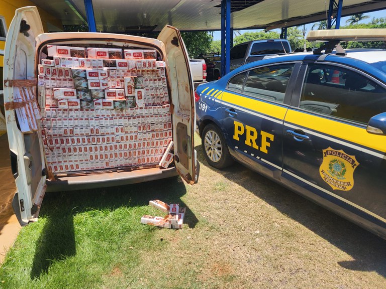 O veículo, modelo Renault/Kangoo, estava abandonado e tinha no seu interior uma carga com 25.000 maços de cigarros contrabandeados do Paraguai.