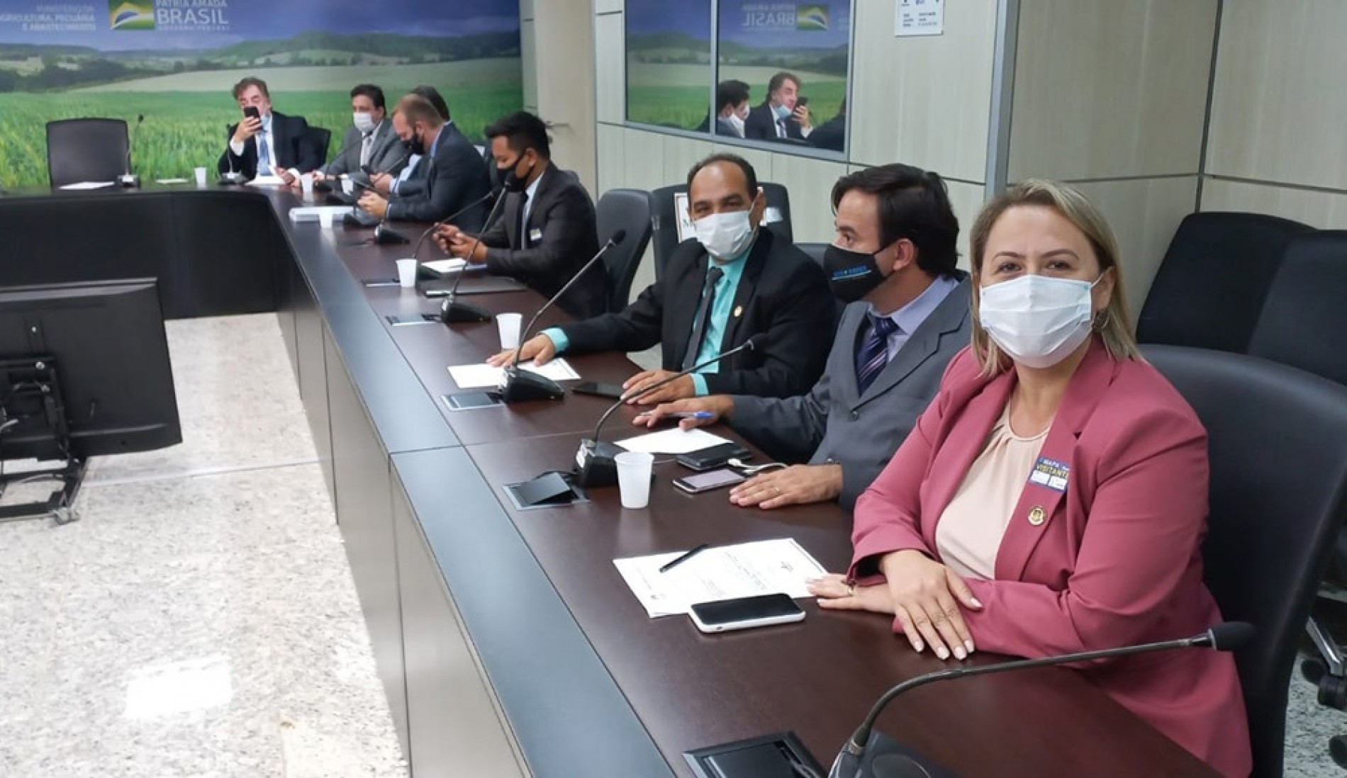 Durante encontro com a ministra da Agricultura, Tereza Cristina, no Mapa (Ministério da Agricultura, Pecuária e Abastecimento), nesta quinta-feira (09) em Brasília, a vereadora Liandra da Saúde (PTB) entregou diversas reivindicações dos pequenos produtores dos distritos de Dourados e reforçou a necessidade da implantação da Ceasa (Central de Abastecimento) no munícipio. A agenda foi viabilizada pelo deputado estadual Neno Razuk (PTB).