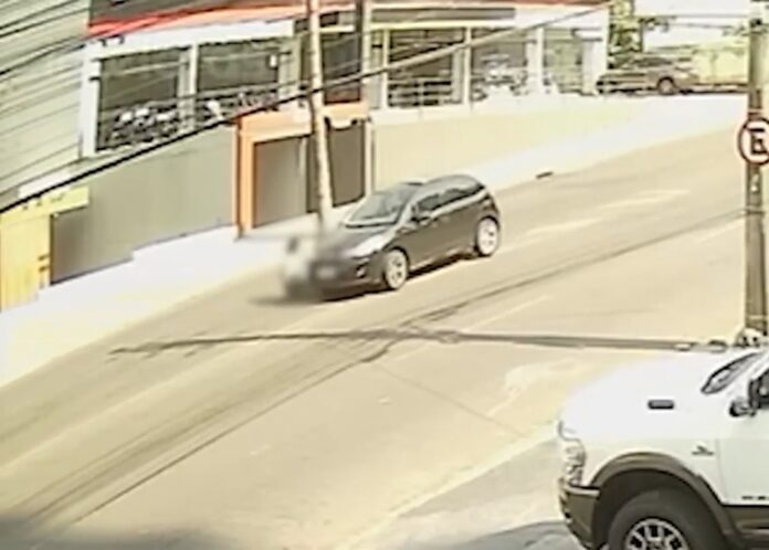 A vítima chega a parar no meio da pista ao ver que o veículo avançou, em seguida, é jogada contra a dianteira do carro e arremessada para a lateral. A condutora parou para prestar socorro à mulher atropelada, que ficou desacordada.