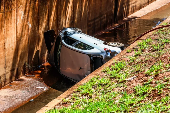 Um veículo acabou caindo dentro do Córrego Segredo, na Avenida Presidente Ernesto Geisel, no bairro São Francisco, em Campo Grande, na manhã dessa terça-feira (02).