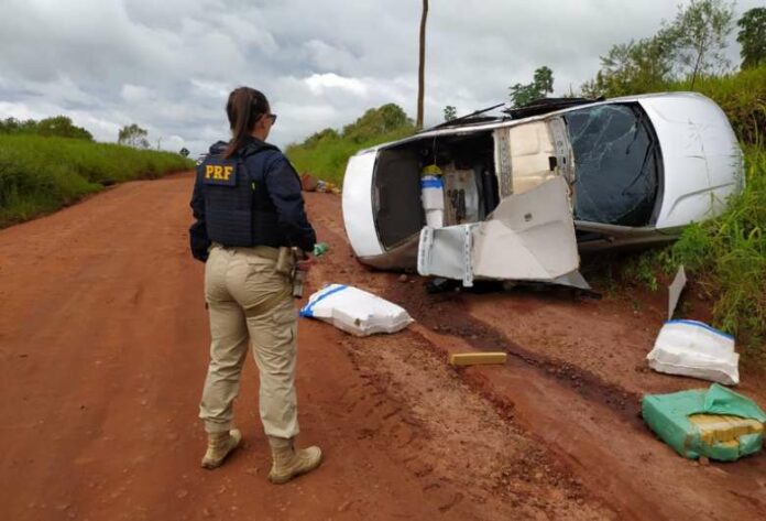 Após tentar fuga e capotar carro, traficante é preso com mais 800 quilos de drogas