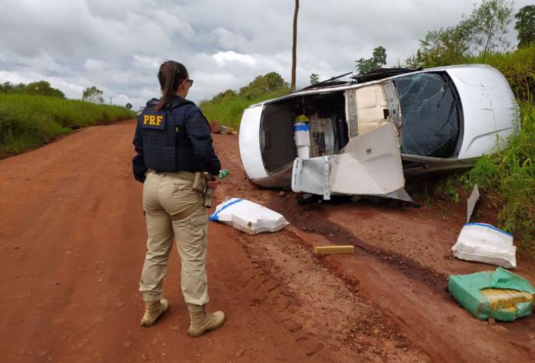 Um traficante foi preso na tarde desta sexta-feira (29) em uma estrada vicinal entre o distrito de Cristalina e Caarapó depois de tentar fugir do cerco da Polícia Rodoviária Federal. Na tentativa de fuga, ele acabou capotando um veículo Cobalt roubado na Bahia em 2020 e que usava placas falsas de Dourados. No carro haviam mais de 800 quilos de drogas.