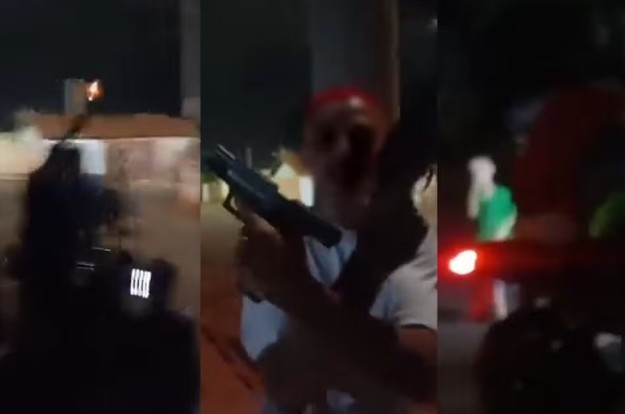 As imagens, gravadas no fim de dezembro, mostram rapazes armados realizando sucessivos disparos enquanto pessoas circulam pela via. O barulho dos tiros se mistura ao som de motocicletas aceleradas e música alta, cenário que chamou a atenção pelo risco à segurança, já que projéteis disparados para o alto retornam ao solo de forma imprevisível.