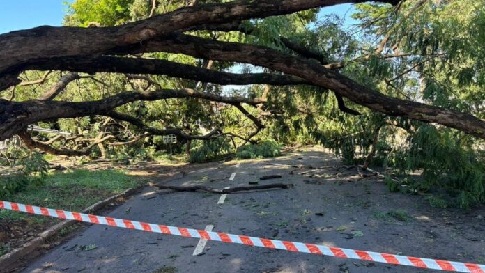 Parte da avenida precisou ser interditada, já que galhos ficaram espalhados no meio da pista. Além disso, duas residências foram atingidas. Em um dos imóveis, houve danos no portão, no muro, no padrão de energia e em parte do telhado. A outra casa teve o padrão elétrico comprometido pelos galhos.