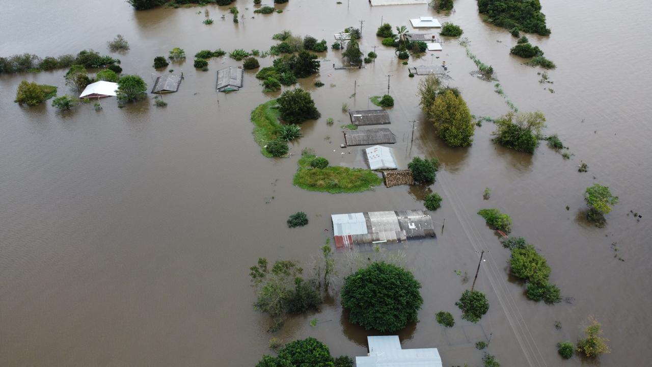 Casas do município de Restinga Seca submersas pela enchente, onde cerca de 400 pessoas foram afetadas pelo desastre/ Foto: Prefeitura Restinga Seca