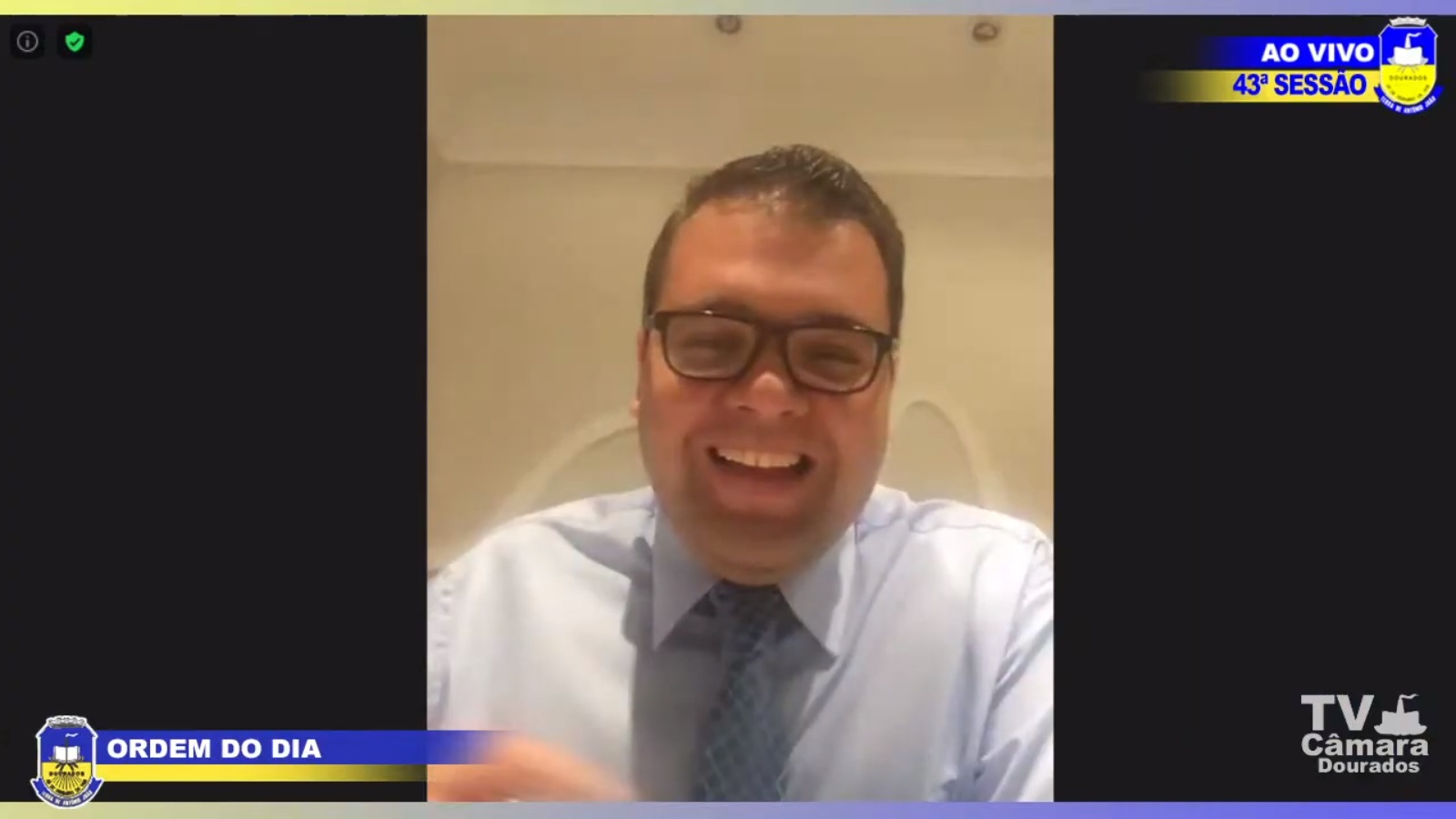 Presidente da Câmara, Alan Guedes, durante sessão online remota Foto: Reprodução/Youtube