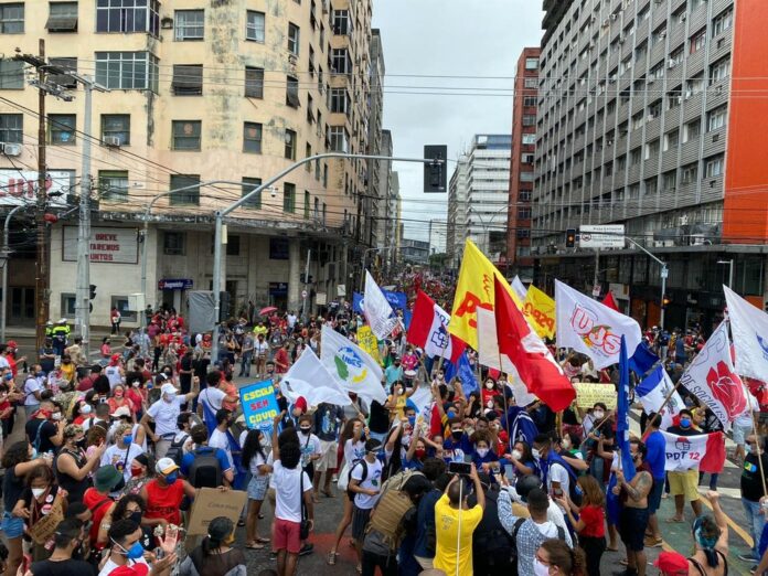 Em Recife, Pernambuco, o ato aconteceu no centro da cidade e foi convocado por movimentos sociais e estudantis, partidos políticos e centrais sindicais, que pediram também vacinação contra a Covid-19 e testagem em massa da população.