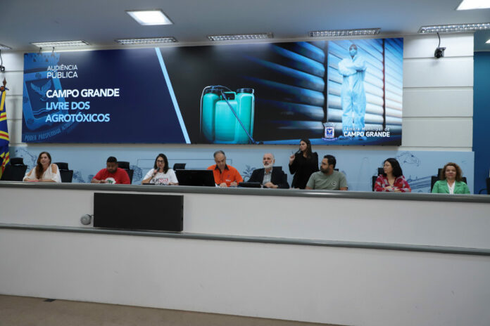 A Câmara Municipal de Campo Grande promoveu, na sexta-feira (21), audiência pública para discutir sobre o tema “Campo Grande livre dos agrotóxicos”. O debate foi convocado pela Comissão Permanente de Políticas e Direitos das Mulheres, de Cidadania e de Direitos Humanos, composta pelos vereadores Luiza Ribeiro (presidente), Júnior Coringa (vice), Valdir Gomes, Clodoilson Pires e Gian Sandim.
