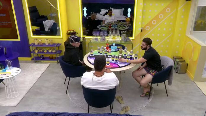 No Quarto do Líder do BBB 26, sentados à frente da Mesa Tática, Babu Santana conversa com Marcelo e Juliano Floss sobre suas possíveis indicações. Ele pontua que quer montra uma berlinda um pouco mais “tranquila” para Leandro, e Marcelo conta votos em Brigido e em Matheus.