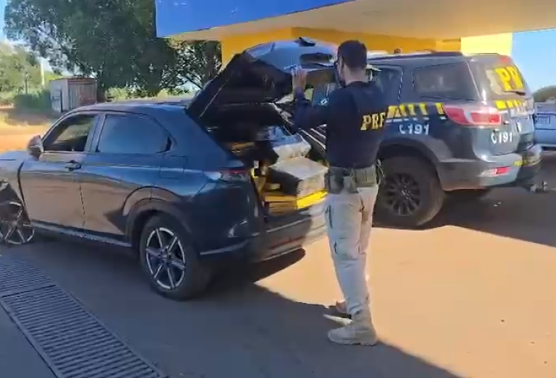 Sem conseguir mais fugir, o condutor parou e foi preso. No porta-malas foram apreendidos 1.026 tabletes que estavam em 11 fardos, pesando ao todo 1.273 quilos.