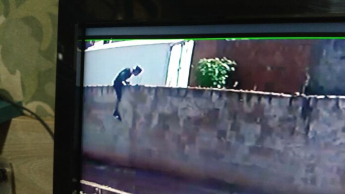 Momento em que o bandido pula o muro de uma residência. (Foto: Divulgação/PM)