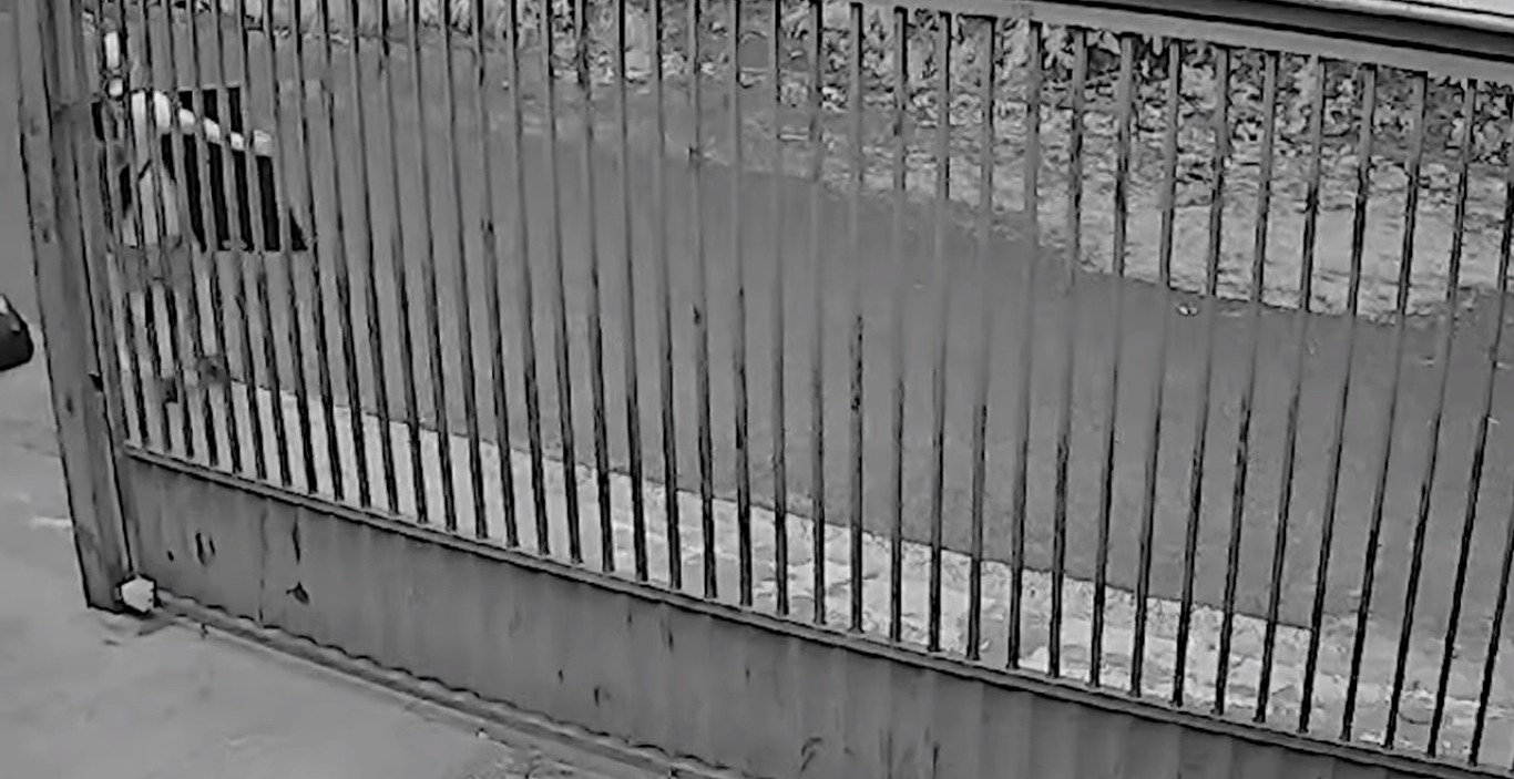 Os criminosos estavam em um veículo, modelo Celta, de cor prata. Eles tentaram abrir o portão de elevação pelo motor, mas não conseguiram. Depois, arrombaram o portão de entrada. Em seguida, é visto deixando o local com os objetos e fugindo.